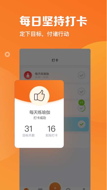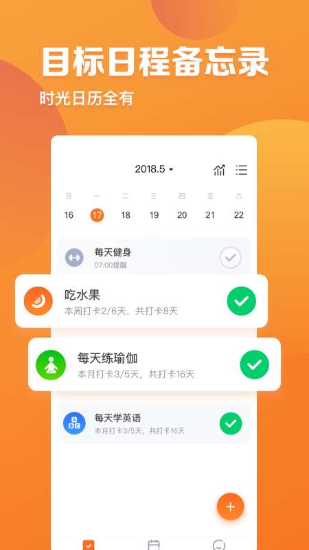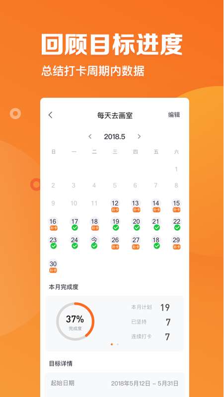 4、用户可以在平台上设置好自己的目标,每天进行打卡。以打卡的方式对自己进行监督,每天看一遍,提醒自己要坚持,不要放弃。有利于最终目标的达成。