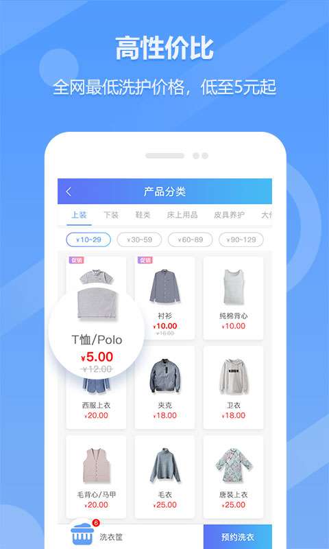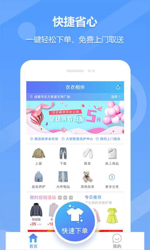 4、一键下单的功能可以让用户在软件当中选择好自己所需要进行洗护的衣物之后,可以快速的对店面进行下单