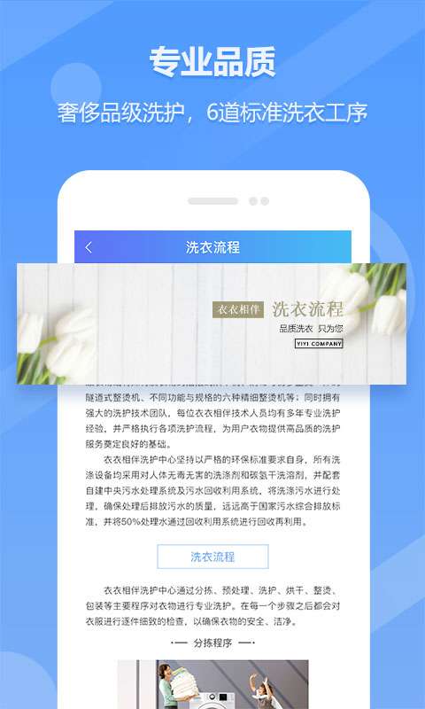 衣衣相伴是一款给用户提供优质服务的软件,现在很多的用户在各种比较难洗以及需要专业的洗护模式的衣物选择上都是进行专业的选择,而这款软件当中不仅能够让用户选择非常专业的门店来为自己进行洗护,还可以直接在软件当中选定自己衣物的品牌,这样能够很好地匹配店面来为用户进行专业的洗护,并且在这个人群当中,用户还可以享受到诸多的优惠,在进行洗衣订单达到一定程度的时候,便会为用户发放各种优惠进行使用