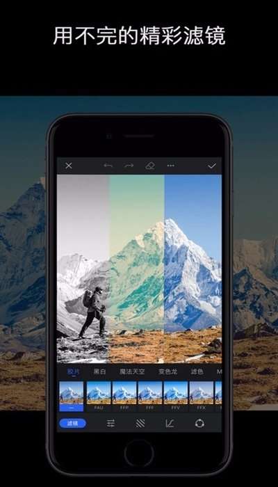 1.使用“编辑”,“创意”和“海报”之类的功能模块,您不仅可以对照片进行常规的色调处理,还可以制作出出色的创意效果和图形海报,从而使您可以通过图像充分表达。