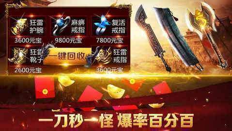 传奇回收红包版是一款玩游戏就有红包领取的传奇手游,在这里拥有非常大的地图等你来探索,游戏中上线就有vip领取,并且装备可以按比例回收,在这里还会不断的举办全新活动等你参加,感兴趣的朋友赶紧来下载吧。