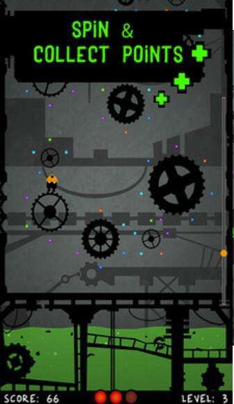 点击屏幕,让矿工从一个齿轮跳到另一个齿轮并收集齿轮周围的点,同时保持不要落入硫酸中。