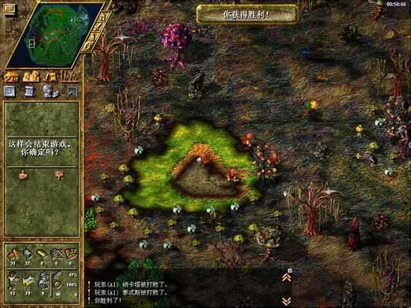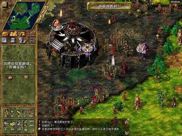 大概30-40个兵就可以稳赢了 左边矿区富煤矿 右边矿区富铁矿 下面矿区富金矿随便造点东西就可以赢了,这把我是全3级剑士,每打完一波恢复一下就行了-53min胜利