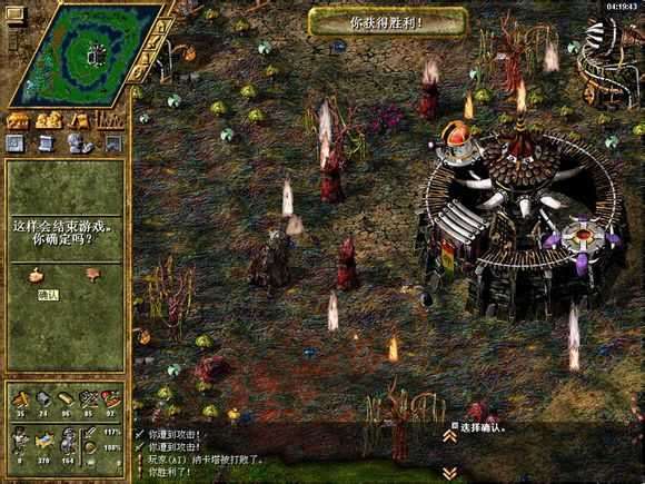 黑暗部落3也是非常耗时的一关,基础工具极少,建议发展方式为:先造工具,再发展基础产业,建筑建完后造5套雕像把攻击力给提上去,60+个3级100攻击力弓手就可以灭了敌人了,消灭主力后就可以F12加速把中间那个墓地给挖干净,2个小时就可以赢了(要挖的范围大些才会判定为全部清洁干净了,不用消灭黑暗部落,,悲催我把中间挖干净了还没赢我以为要消灭之,就不停的F12,后来发现只要中间墓地挖的大一些就可以了)-259分钟胜利