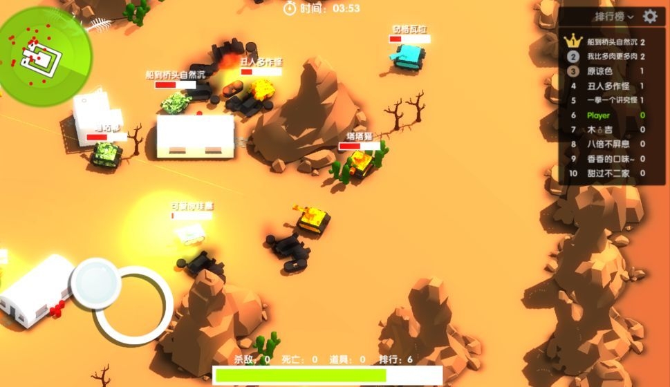 坦克大乱战是一款坦克大乱斗游戏。20名玩家同平台对轰,各自为战,简直不要太刺激。走错一步有可能就会成为众人的集火对象。击中正中心会暴击,边缘的话掉血量很少,需要多多练习,提高命中率,才能存活到最后,注意战术和策略,不要一上来就刚,迂回作战,边消耗边找掩体。