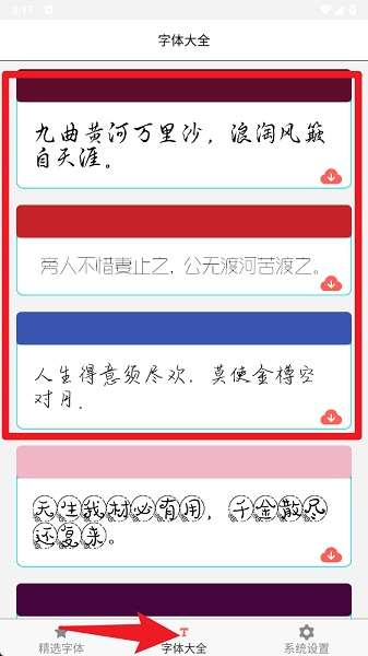 4、在【字体大全】中,可以查看更多字体资源,点击即可下载或应用。