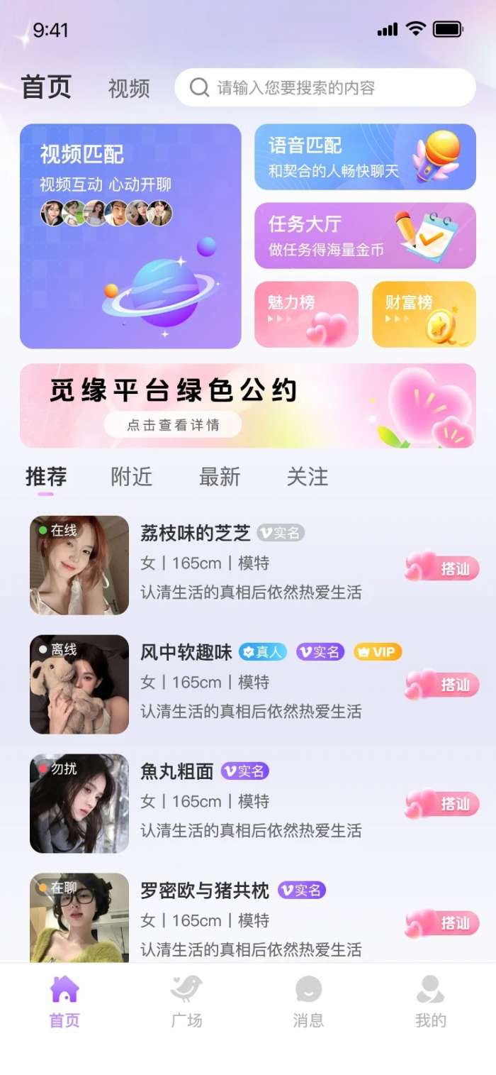 觅缘app是一个聊天社交软件,专门用于相亲和交友。觅缘app软件为单身人士寻找合适的伴侣和建立有意义的关系提供了一个安全、方便、高效的平台,用户可以轻松浏览各种个人信息,如年龄、兴趣、教育背景等,以便选择与他们匹配的信息,可以直接推送附近的朋友,轻松扩大自己的社交圈,有更多令人兴奋的体验等着大家去体验,没有广告的干扰,还有许多有趣的游戏选项可供选择,帮助你轻松摆脱单身。所有玩家都经过实名验证,来这里享受互动乐趣。