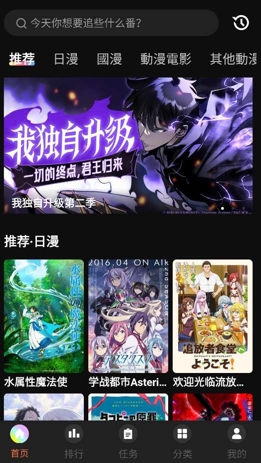 1、下载安装并打开软件后,在首页中有众多动漫推荐。
