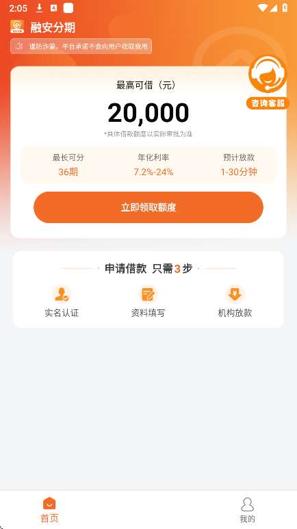1、在当前页面下载最新版的融安分期app安装包,然后注册登录;