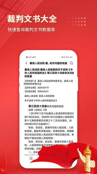 2、界面简洁明了:布局清晰,排版规范,阅读舒适,符合法律文本显示的专业要求。