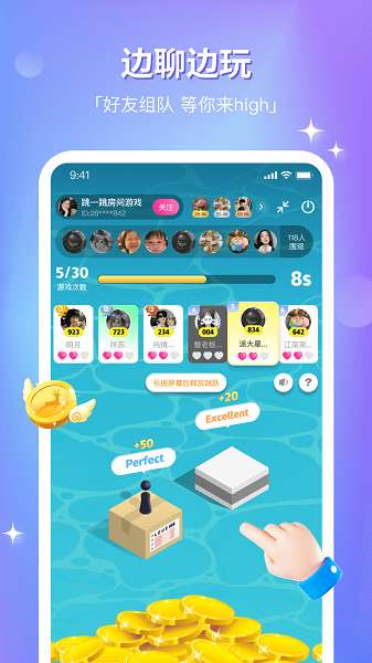 3、语音速配室:添加主题语音室(如“深夜树洞”“脱单急急令”),边听边聊,更自然。