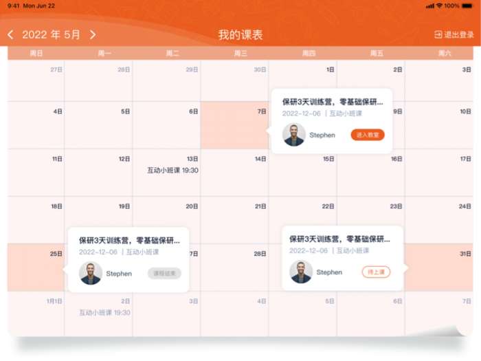 2、在我的课程板块可以看到已经预订的课程的具体情况。