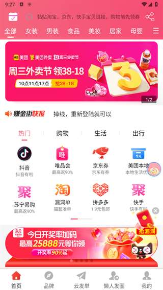 赚金街app是一个非常高品质的省钱购物软件。这个软件的特点是丰富多样的优质产品和大量的优惠券资源。用户在手机上安装该软件后,可以随时在软件上搜索自己需要的产品及相关优惠券,领取优惠券并下订单,轻松实现省钱购物,非常方便。不仅如此,它还为用户提供了一个赚钱的好方法。用户只需点击一下,就可以与家人和朋友分享软件中的各种高质量产品。