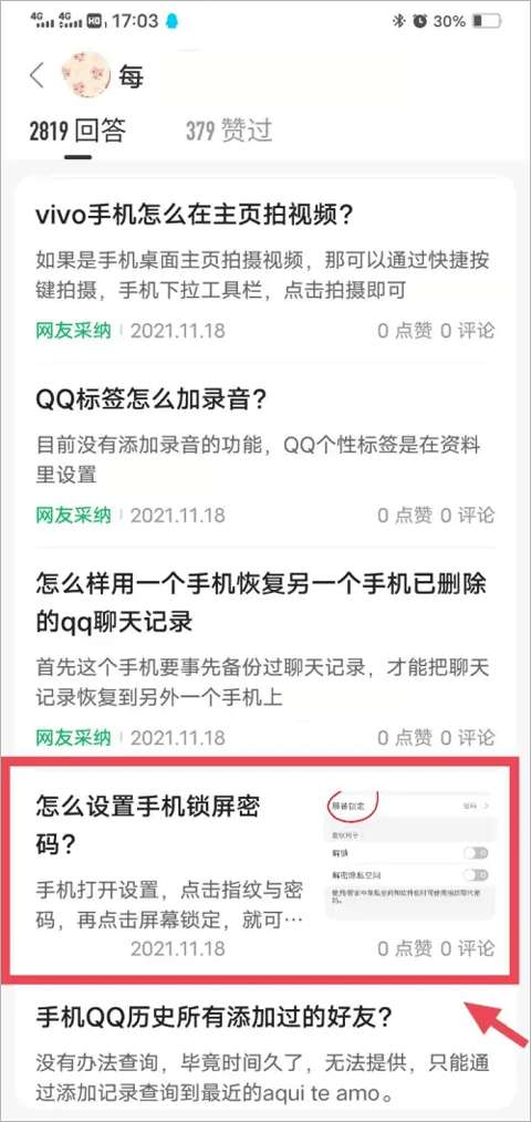 3、你可以看到你回答的所有问题。单击要删除的答案。