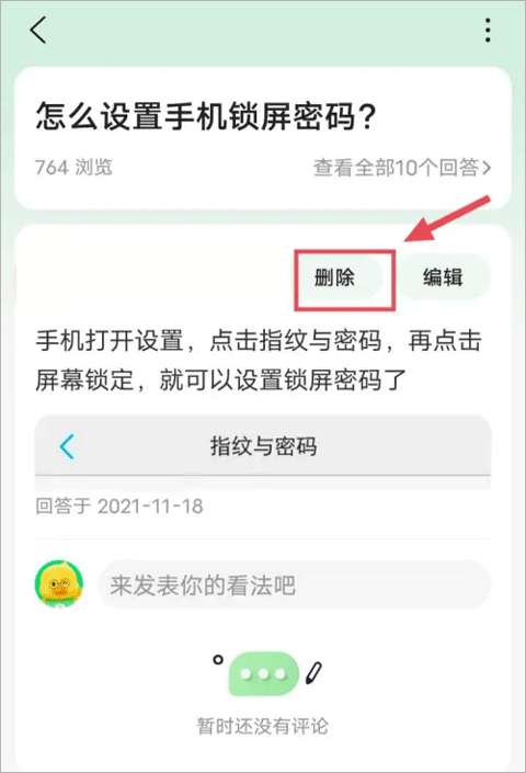 4、进入详情页面后,点击页面上的“删除答案”选项。