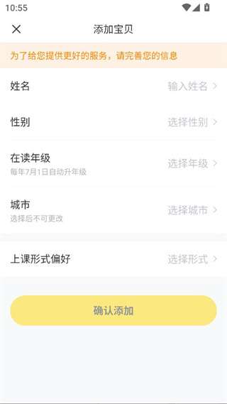 3、进入平台后需要根据个人情况,添加儿童的个人基本信息内容。