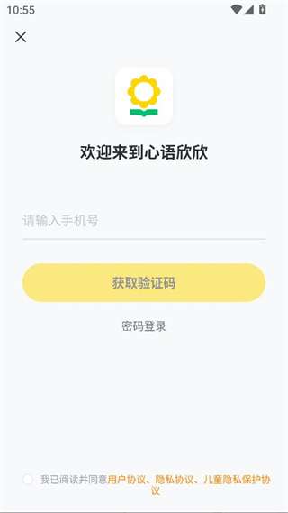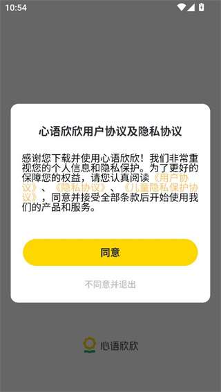 1、轻松下载并安装心语欣欣app,阅读用户协议后点击同意。