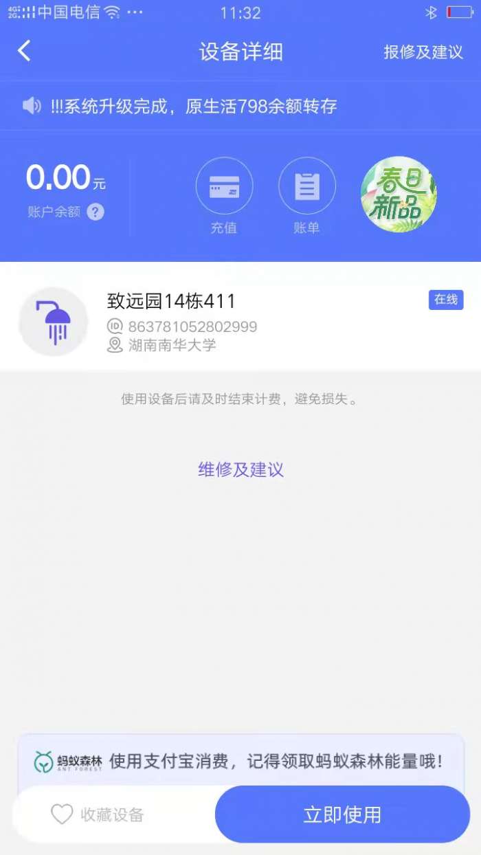 慧生活798app是一款校园生活服务软件,已与全国23个省的600多所大学合作,大学生中每天有近500万活跃用户。慧生活798app该软件的主要功能包括:直饮水、热水淋浴、互联网洗衣机、取送衣物、互联网吹风机等。只需轻轻一触手机,您就可以享受各种生活服务。简单易用的操作让用户的生活更加方便;慧生活798app还支持在线充值操作,非常用户友好。欢迎有需要的朋友下载使用!