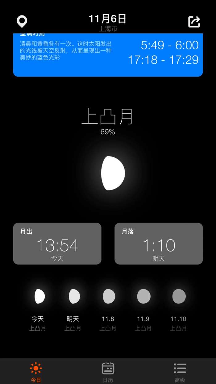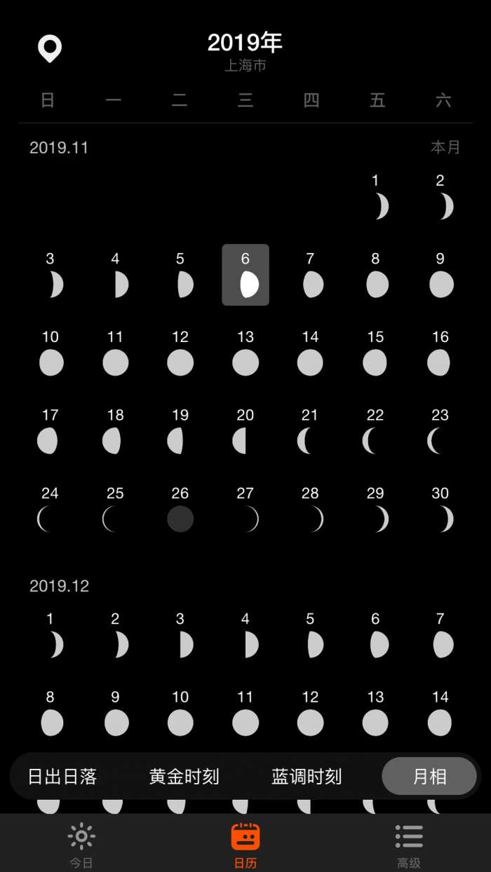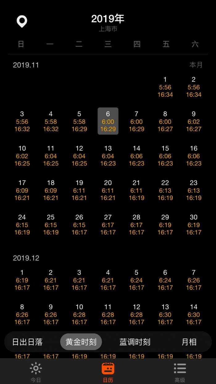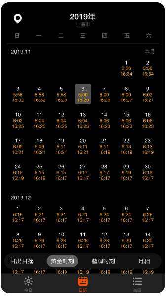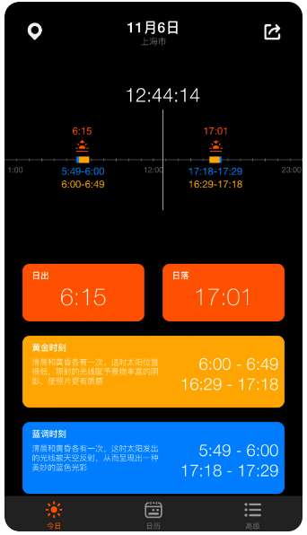3、智能统计日出时间、日落时间、黄金时刻等,数据准确,准确度高。