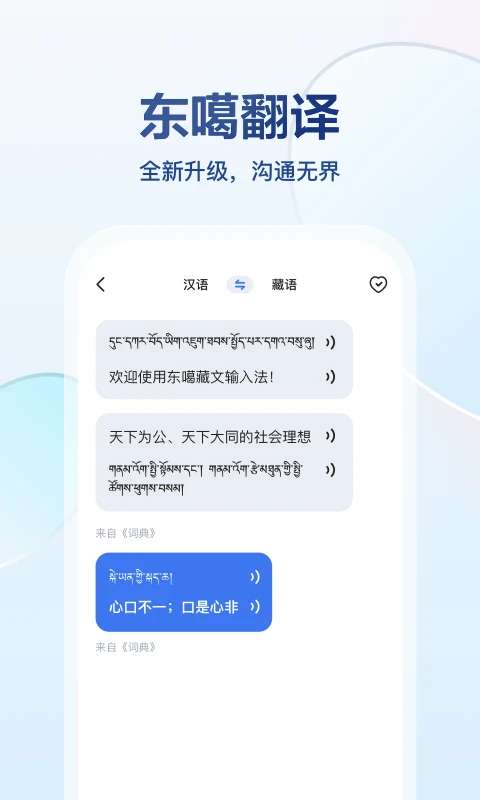 2、智能关联:利用人工智能技术,提供更高质量的藏文输入关联体验。