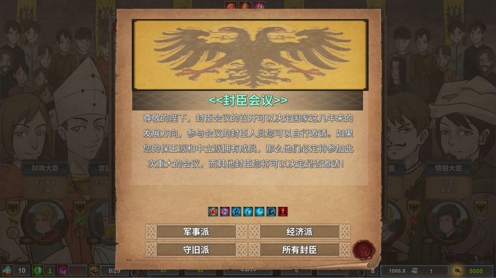 君主模拟器在这款游戏中,玩家们可以体验一把当国王的乐趣,在这里游戏会给教程提示,会把长宝的每个建筑都以标题文字显示在上面,这样在你放大或者是缩小界面的时候,都能够找到每一个建筑的位置。如何管理自己的国家,就是你需要去学会的,每天的会议你都要参加,而且会有不同的卷轴告诉你要做些什么,你要派哪些门派去完成这项任务。