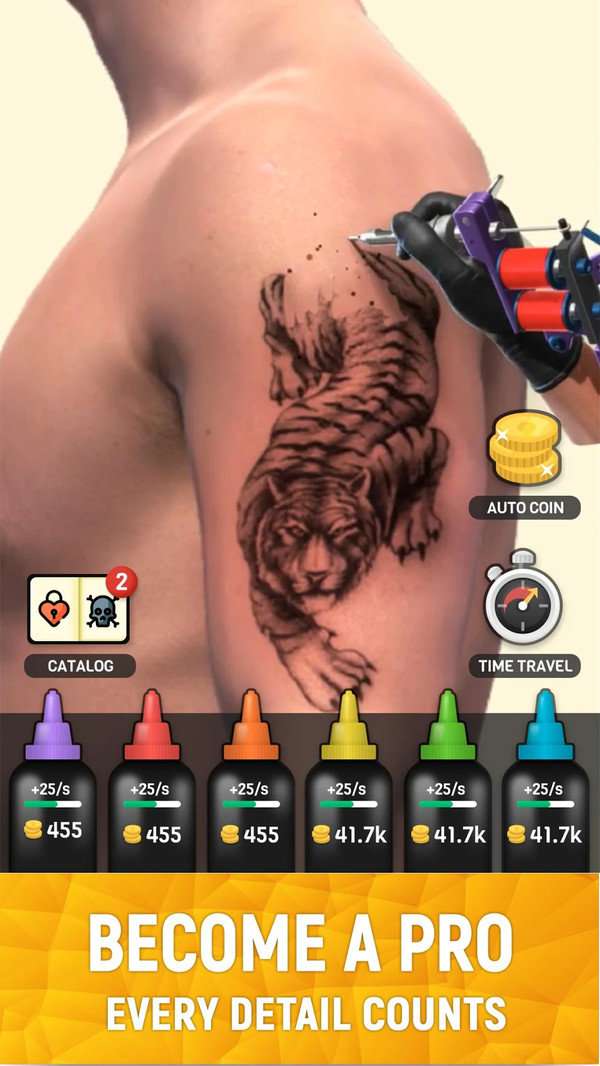 放置纹身店游戏是一款非常考验你的审美,同时也是可以让你的艺术气息释放出来的放置模拟类经营趣味游戏,在游戏中玩家可以知道什么才是最能够释放你的压力与不满的东西,那就是纹身。无论是嗡嗡作响的机器还是那些流畅线条,亦或者是那些带有颜色的图案都是你的最爱。