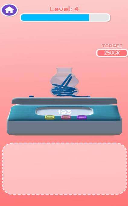 扔进罐子里是一个与罐子专业相关的挑战游戏,这里面会有一个电子称游戏会给予任务,要你称重多少克的物品在罐子或者是碗中。在电子秤上有三个按钮,黄色,红色,紫色参与新手任务之后,你就能够做到这三个按键是干什么的了。至于罐子里装的什么,就需要你在界面下方空白区域进行绘制。只要与游戏侧边的克数相同,这个挑战你就能够完成了。