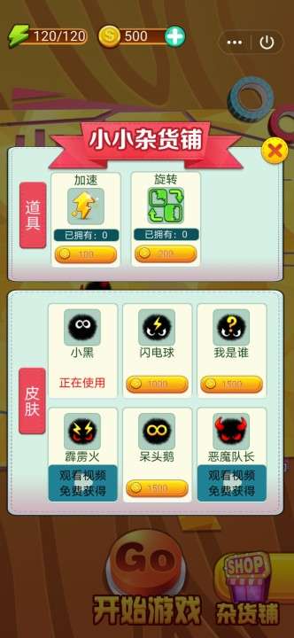 3、在这里也有商店不过名称叫做小小杂货铺可以拥有不同的道具还有就是一些小黑球的皮肤;