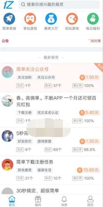 1.平台发布了高额奖励的各种任务,用户可以自由选择要在此处完成的任务;