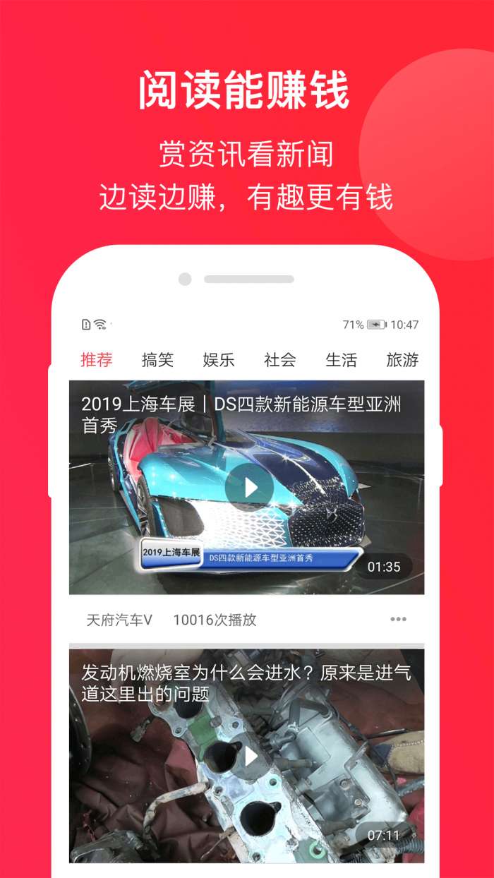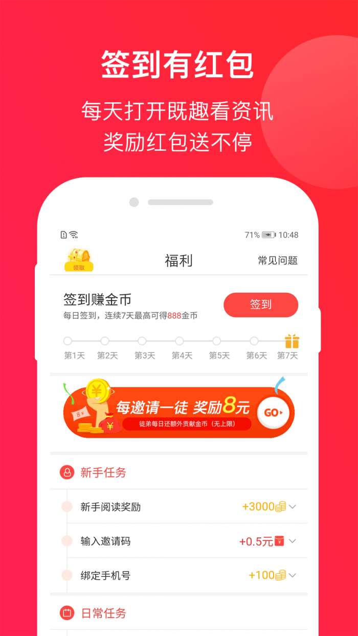 1、用户不仅可以在线上阅读自己感兴趣的新闻资讯,而且在进行阅读的同时,就能够直接为自己赚取一定的金钱,让用户在不知不觉之中就能够赚钱。