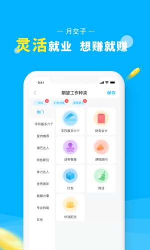 3、月交子app功能强大,提供大量优质工作资源,工作来源安全可靠。