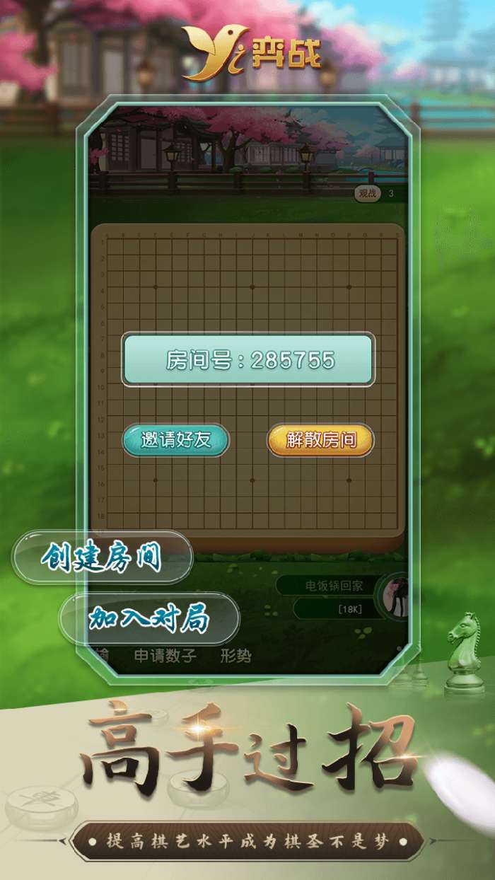 3、创建房间,邀请身边棋友一起组团开展,还可以加入已经开始的对局。