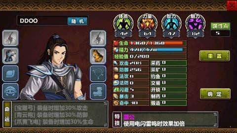 把自己和甘宁升到满级。自己先把体力和智力点满。剩下的点留着用来穿装备用。副将都满体力和力量。剩下点同样穿装备用。下面给大家解释为什么这样加点。