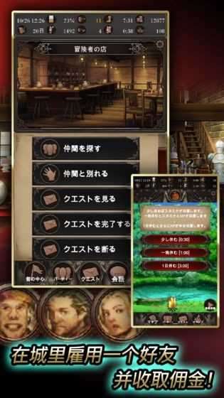 "可以雇佣冒险者解决村落的事件,也可以启程前往更大的城镇。