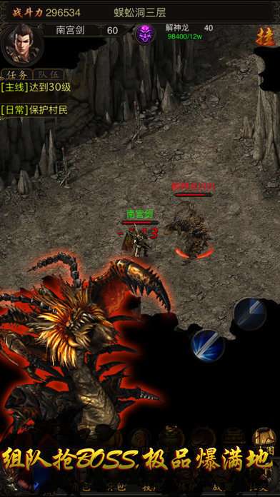 大量的野外boss等你来挑战,熊人统领、巨角领主、炼狱蛛王、地狱炎魔等超多boss掌上激情抢杀,掉落更多极品装备。