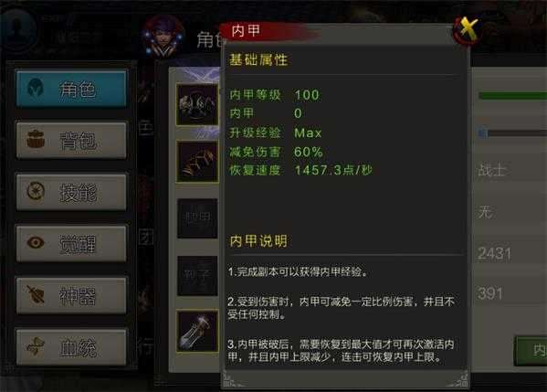 关键2:“内甲”让你免受控制内甲的作用实际上并非只有减免伤害那么简单,它存在的更重要的意义在于,让你免受敌人技能所附带的控制效果,比如“击退”、“挑空”、“击倒”等等,当你的内甲存在时,大可不必担心被敌人对你造成“连击”,但此时也不要放松警惕。