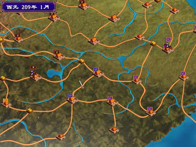 2.剿匪(打电脑),如果在房间看见电脑带了 郡治,就退出再开一次,因为电脑带这个在郡城和王城打架时战斗力非常强大。最好打带 兵治 或者 政守 这两种帅印的电脑,这两个没有战斗力加成