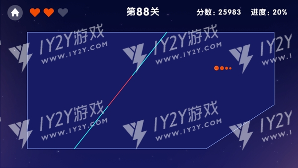 1、选择游戏模式进入闯关,面对小球来使用切割来减少他的空间;