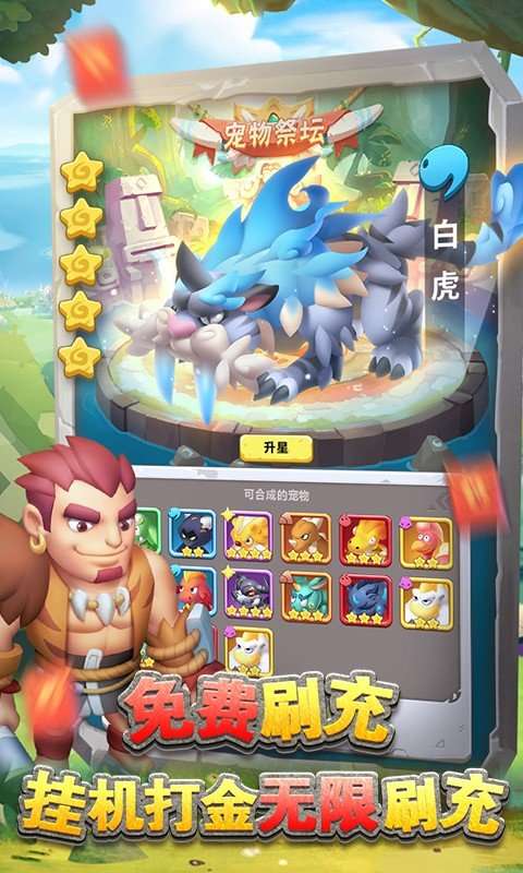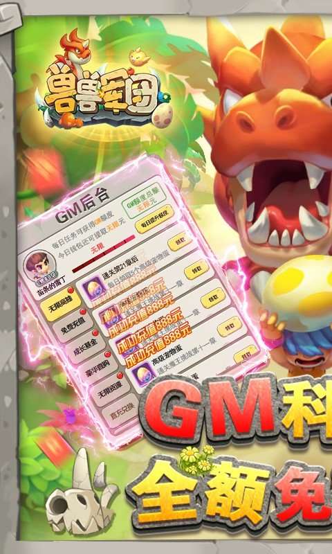 《兽兽军团-GM后台刷充》开局激活GM后台工具,首充月卡全免费,每日送免费直充,更送5星红暴,无限抽奖,无限资料,GM礼包等等!《兽兽军团》是一款萌宠养成收集休闲挂机手游,独创人宠一体骑乘作战,上百种史前萌宠和技能随心搭配,给你最畅爽刺激的战斗体验!更有丰富的部落战、boss战等大型战斗副本,和你的萌宠一起开启原始冒险吧!