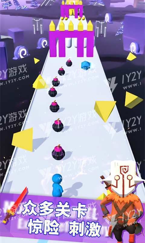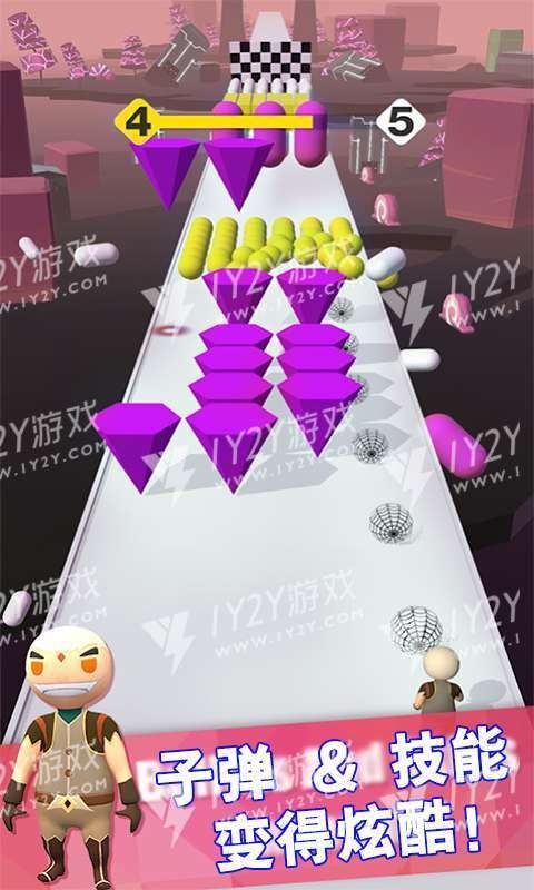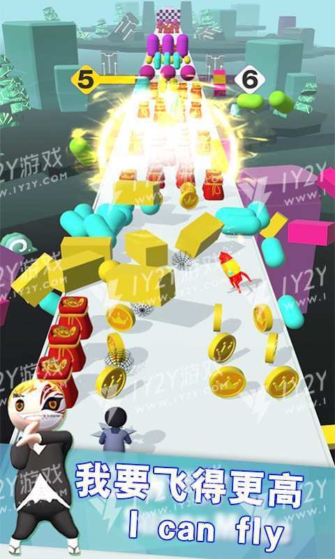 1、一路上撞击掉的障碍越多,你就能获得越多的分数,闯关分数有目标。