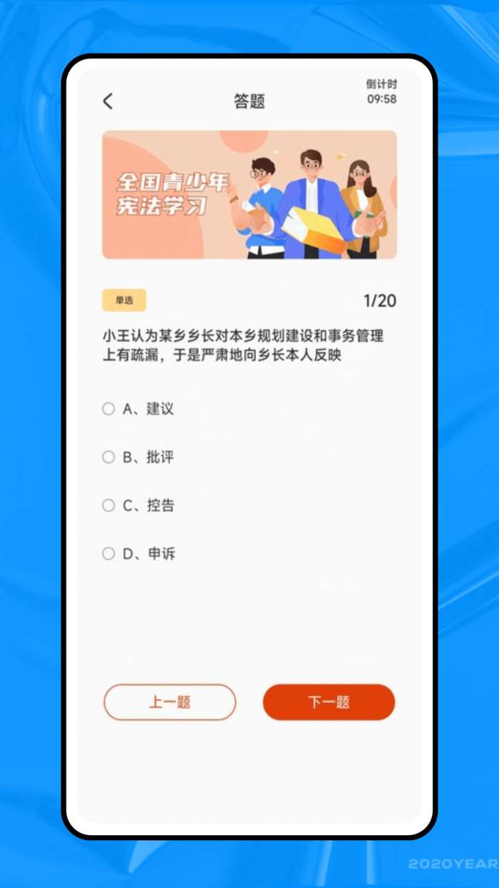 4、想学习宪法知识点击“宪法知识答题”,开始答题挑战。