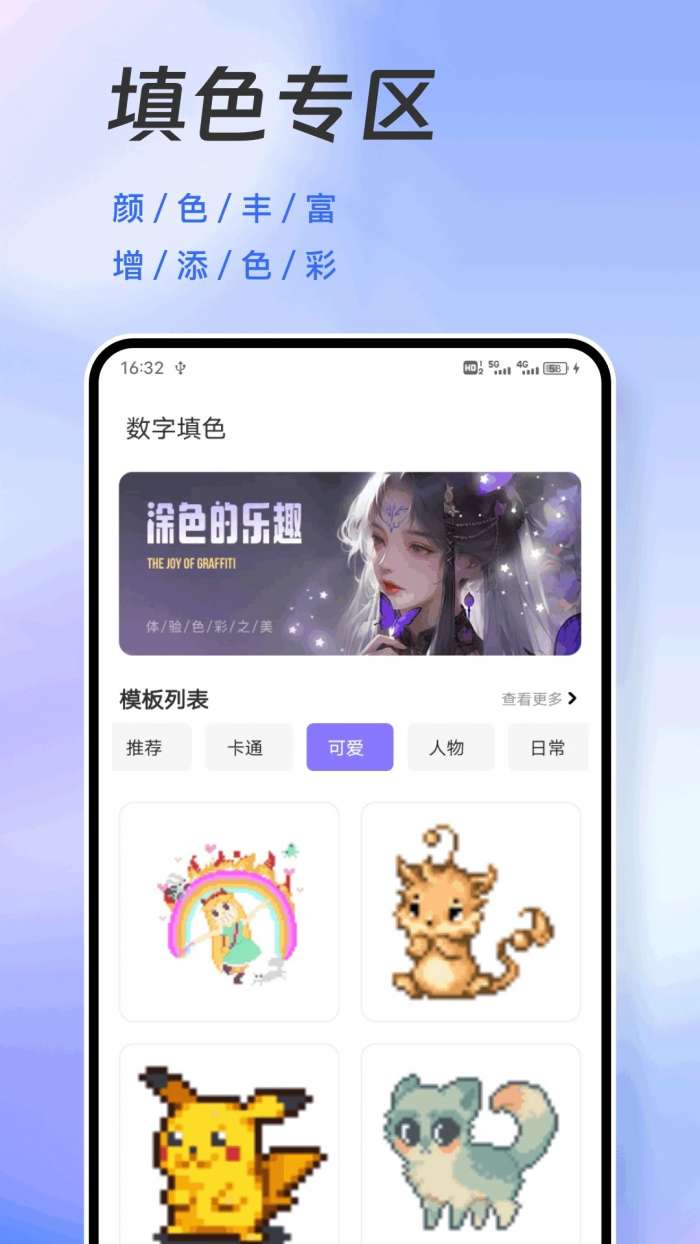 4、非常完整的着色和绘画工具。在应用程序中,您可以自己选择着色工具。