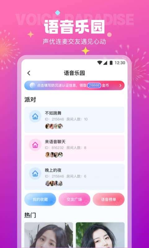 语音社交类软件大全我们精心整理了一份语音社交软件大全,为您推荐了几款备受欢迎的语音社交应用,如斯尔特崽崽语音、千寻语音、嘿uu和星寻社交等。这些app通过智能匹配,助您快速找到志趣相投的朋友,并提供语音连麦功能,让您的...