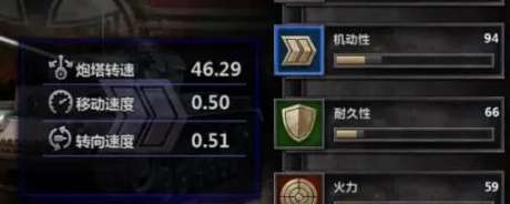 比如说在机动性上,就分为炮塔转速、移动速度,转向的速度等三个类型。