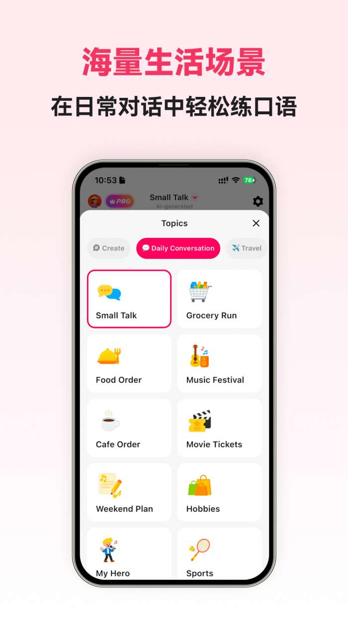 5、该软件提供适合多场景学习的日常口语对话教学。