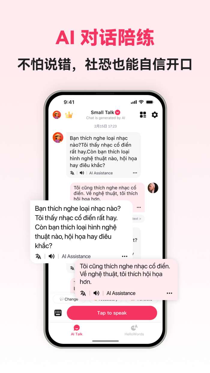 2、享受独特的越南语学习和教育,完成新的发音和阅读指导。