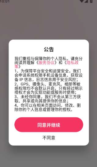1、打开软件后点击“同意并继续”按钮进入APP。