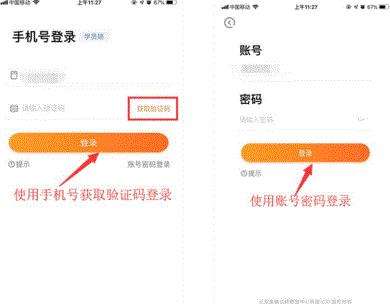 使用手机号获取验证码登录或者收到参训短信里面的账号和密码登录。