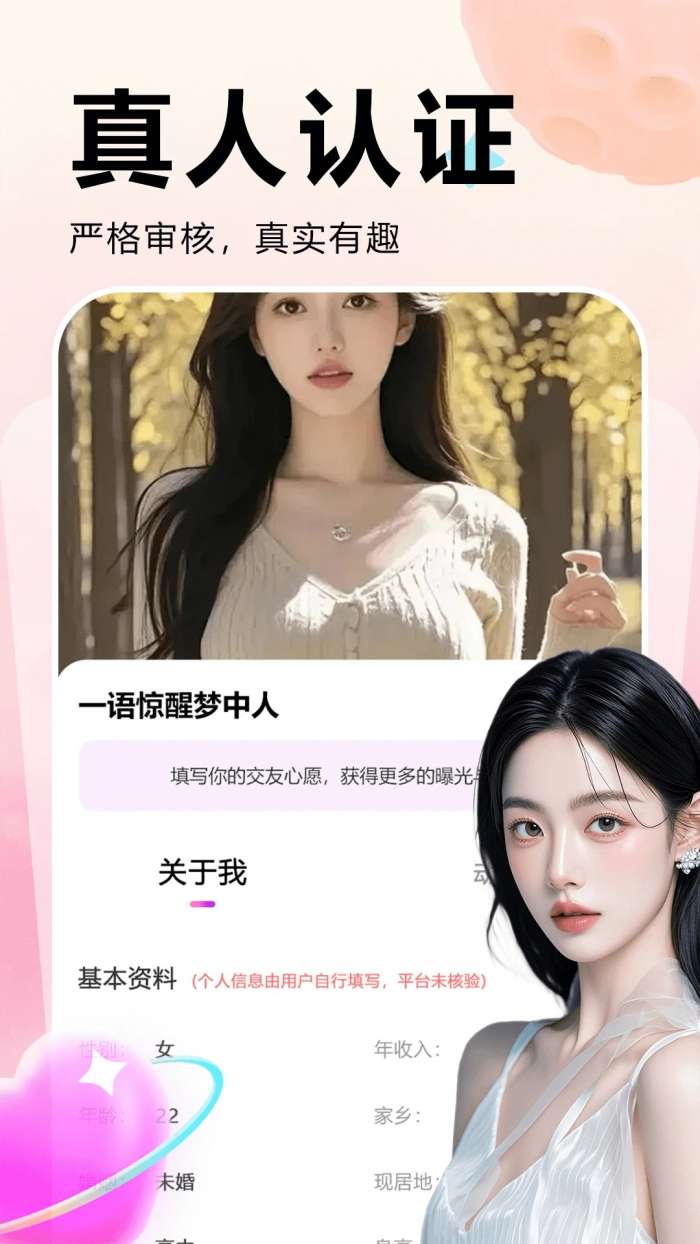 每个人都需要对自己的身份信息进行实名认证,为用户提供更真实的约会服务。