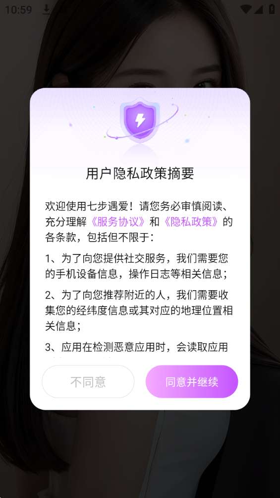 1、在本站下载完成之后进入该应用,点击同意下方的用户隐私政策。
